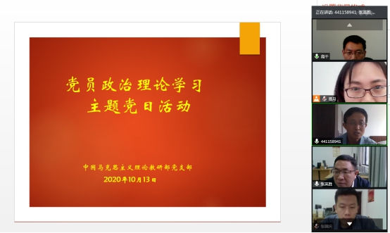 根据支部学习计划安排,10月13日,中国马克思主义理论教研部党支部通过腾讯会议平台开展政治理论学习活动,学习《习近平谈治国理政》第三卷中的《完善和发展我国国家制度和治理体系》专题。