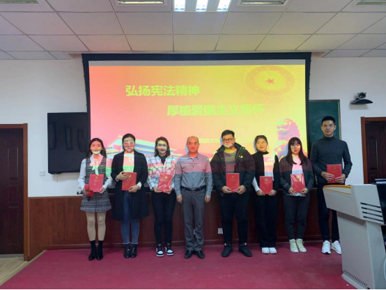 2019年12月4日,是我国第6个“国家宪法日”暨全国法治宣传日,是全民的宪法“教育日、普及日、深化日”。为加强我校学生宪法观念,树立宪法精神,由beat365唯一官网主办,学院研究生党支部、研究生会承办的“弘扬宪法精神,厚植爱国主义情怀”宪法宣传活动于12月4日在J9-227举行,院党委书记郭加书、党支部书记邴建伟,教师代表巩永杰、苑素梅以及学院全体研究生参加了本次活动。