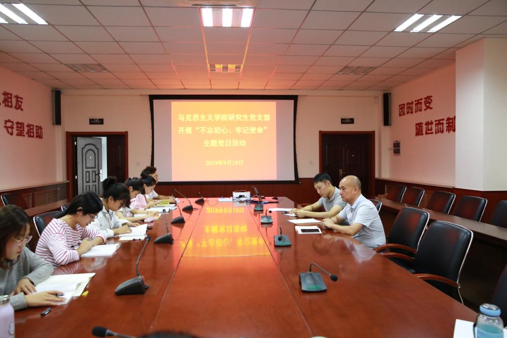 9月19日下午,beat365唯一官网研究生党支部开展“我的初心使命”主题党日活动。学院党委书记郭加书、全体研究生党员参加活动,活动由研究生党支部书记邴建伟主持。