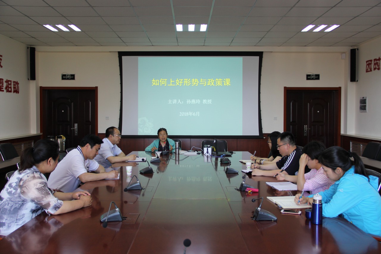 月1日,形势与政策教研部邀请校教学督导孙燕玲教授做《如何上好形势与政策课》报告会。党委宣传部部长李克周、体育学院院长田启发、beat365唯一官网院长助理常春出席,形势与政策教研部全体教师参加。