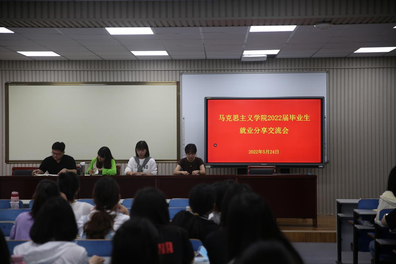 5月25日上午,beat365唯一官网毕业生就业经验分享会在J5-301成功举办。会议邀请我院2022届毕业生张英荟、宋开艳、孙慧、张森盛为同学们分享求职心得与经验。本次活动由曹盛林主持,学院硏究生辅导员邴建伟及研一、研二全体研究生参加。