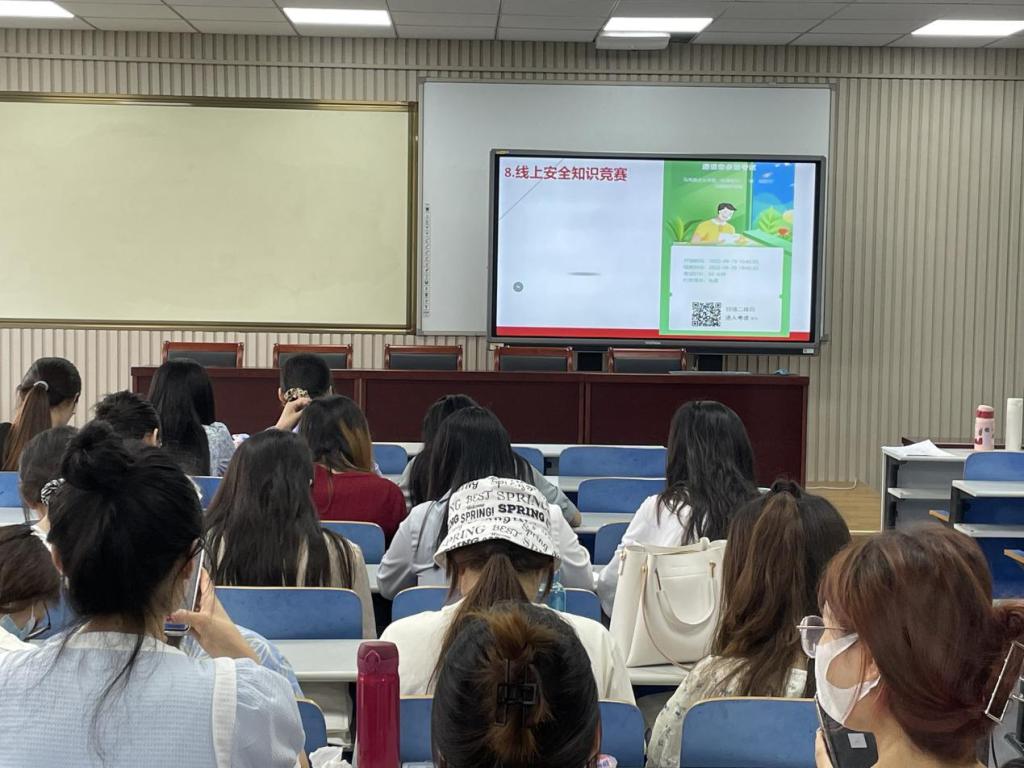 为提高研究生安全意识,深入推进安全工作,学院于6月20日上午在9号楼301教室,开展安全教育主题班会。本次活动由学院研究生会承办,研一研二全体研究生参加,研究生辅导员邴建伟主持。