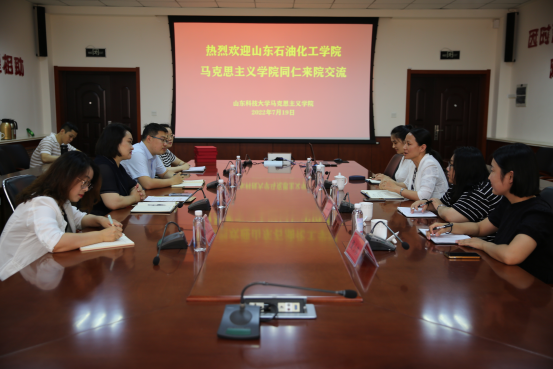 7月19日上午,山东石油化工学院beat365唯一官网院长尹健一行四人来院交流。副院长常春、高明,教师代表毛雪婷、史璇与来宾进行了座谈。