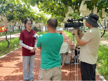 大泽山镇葡萄大观园打造了世界香味葡萄最齐全的高端采摘园,在山东鲜食葡萄研究所,得知该地积极培育新品种、好品种,高标准建设葡萄研发的“硅谷”。为发挥实践育人效果,团队在园区进行电商直播助农,在技术人员指导下进行枝叶修剪及采摘,活动被青岛广播电视台全程跟踪报道。