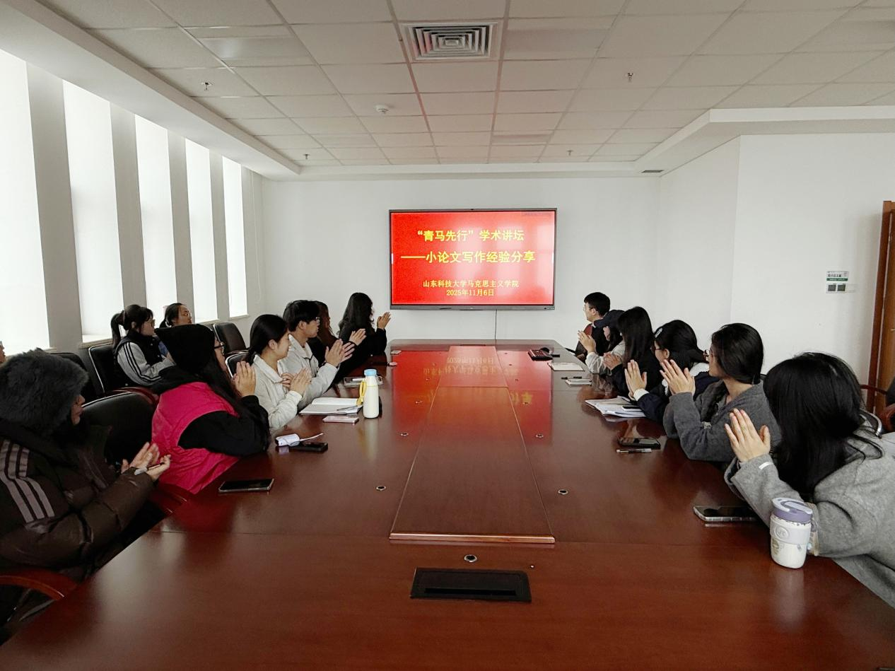 为提升研究生学术素养,增强论文写作能力,学院于11月6日下午在图书信息中心1208会议室举办新一期“青马先行”学术讲坛,邀请2023级研究生冷晓龙开展“论文写作经验”专题分享,2025级全体研究生参加本次活动。