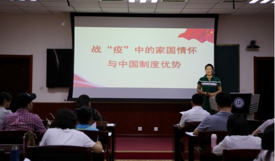 本次比赛共有5名青年教师参加。比赛评委由校教学督导孙燕玲、学院领导以及教学指导委员会成员共7人担任。参赛教师围绕“抗‘疫’战争中的思政课”这一总主题,分别从以人为本、大国担当、实践的价值尺度、中国制度优势、集体主义等为主题,结合抗击新冠肺炎涌现出来的典型人物和事迹,进行了深入挖掘和讲解。经过评委们的认真研究,反复斟酌,秉承优中选优的原则,最终确定由周月、高明、李四光3名青年教师代表学校参加青岛市的比赛。