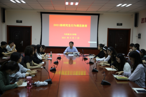 9月6日,学院开展了2021级研究生入学专业教育。副院长邵勇对新生表达了殷切的期望,希望2021级新同学能够明确目标、制定规划,将每个阶段的任务完成好、实现好,不负韶华。贾强老师带领同学们学习了最新版《研究生手册》,解读了相关规章制度,明确学术规范。9月7日至10日,邴建伟老师对研究生的行为规范、安全意识、心理健康等进行了教育引导并提出了明确要求,强化学生相关意识。9月8 日,徐波书记为新生作了题为“坚定理想信念,扬帆奋进征程”的专题教育,号召同学们在学习经典、感悟真理、守正创新中,坚定理想信念,创造智慧人生。