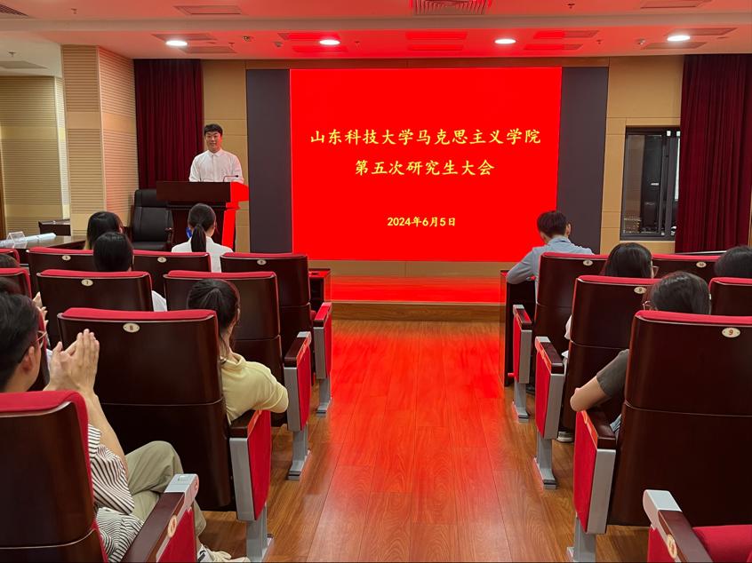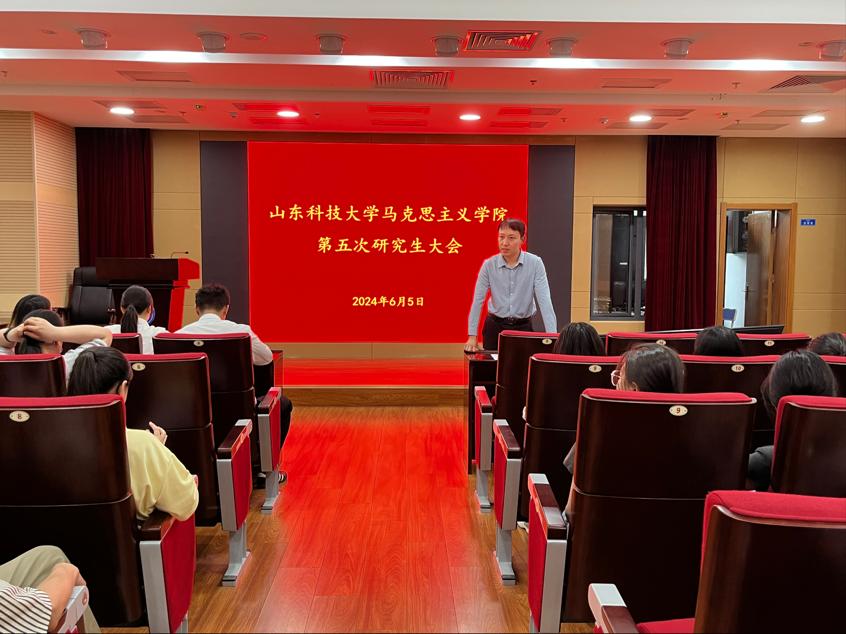 6月5日下午,beat365唯一官网第五次研究生大会在图书馆4号报告厅顺利召开。学院全体研究生、辅导员邴健伟参加会议,2023级研究生张鑫豪主持本次会议。
