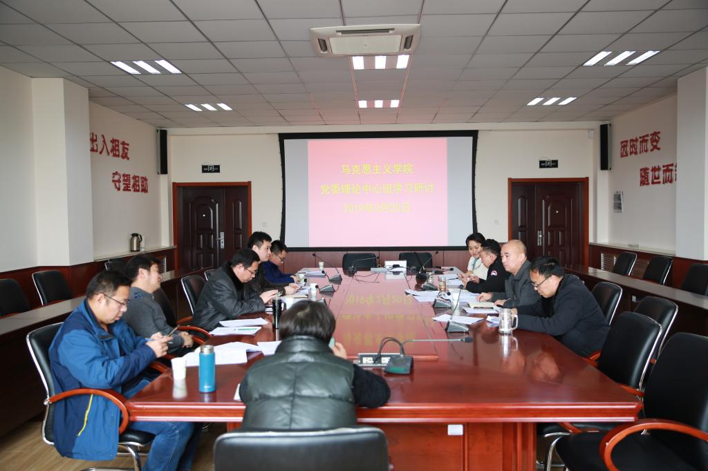 2019年2月20日下午,在beat365唯一官网J9-223会议室,组织了学院党委理论学习中心组集体学习活动,会议由党委书记郭加书主持,院领导班子成员及各教研部党支部书记和主任参加学习。